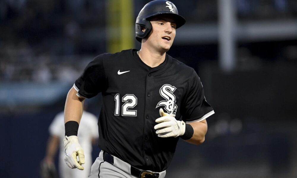 Chicago White Sox’s Colson Montgomery rounds the bases after his three-run home run during the second inning of a baseball game against the Tampa Bay Rays...