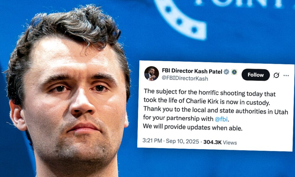 Charlie Kirk Alleged Shooter in Custody … FBI Director Says Published September 10, 2025 3:31 PM PDT The person who allegedly murdered Charlie Kirk is in...