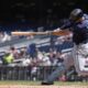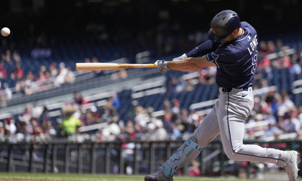 Tampa Bay Rays designated hitter Brandon Lowe hits a grand slam against the Washington Nationals during the second inning of a baseball game at Nationals Park,...
