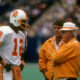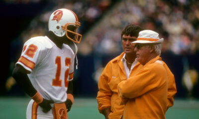 Quarterback Doug Williams #12 of the Tampa Bay Buccaneers talking with Head Coach John McKay (R) circa 1978 during an NFL football game. Williams played for...