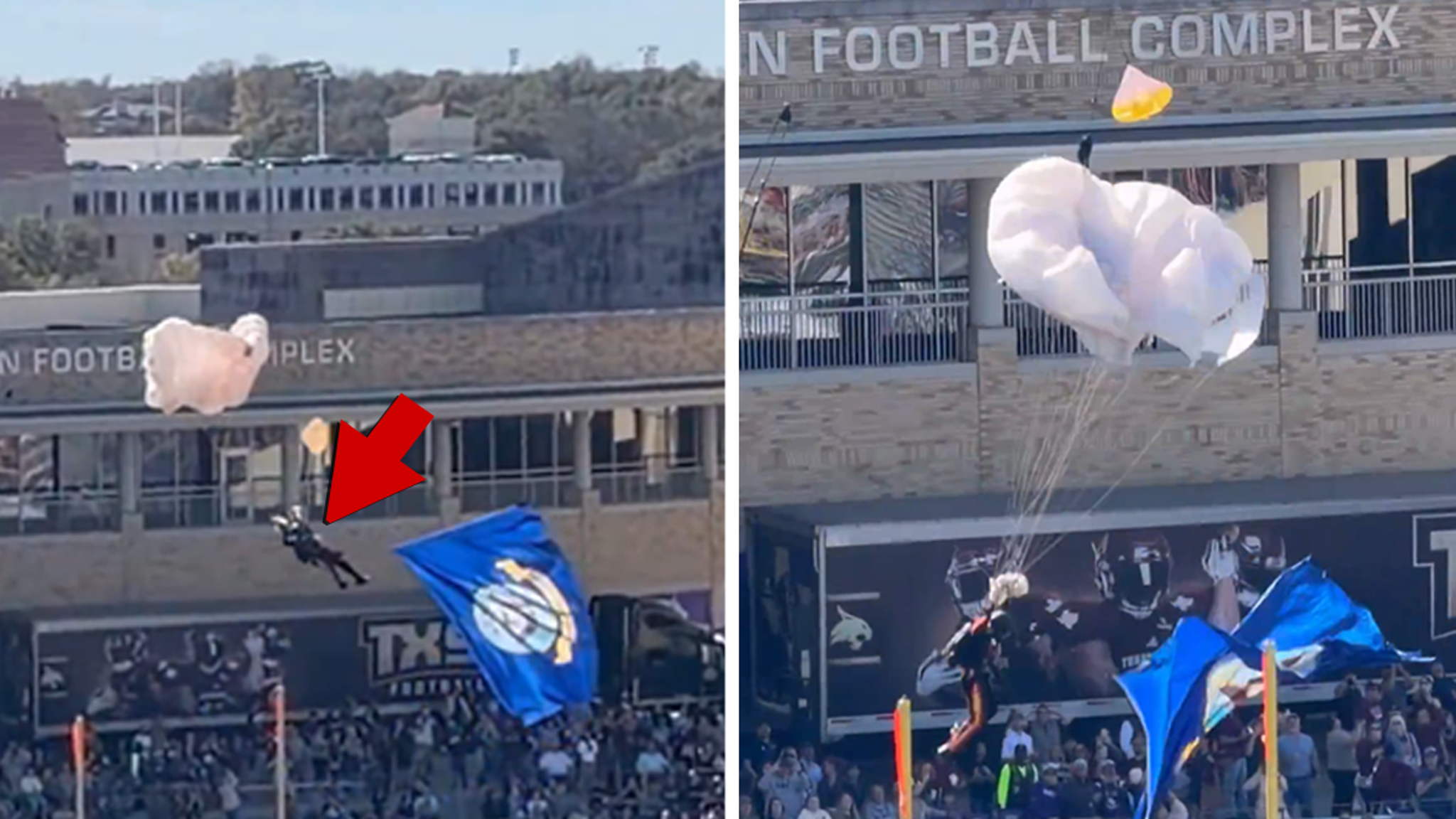 Parachutist Catches on Field Goal Net, Crashes to Ground Before Armed Forces Bowl