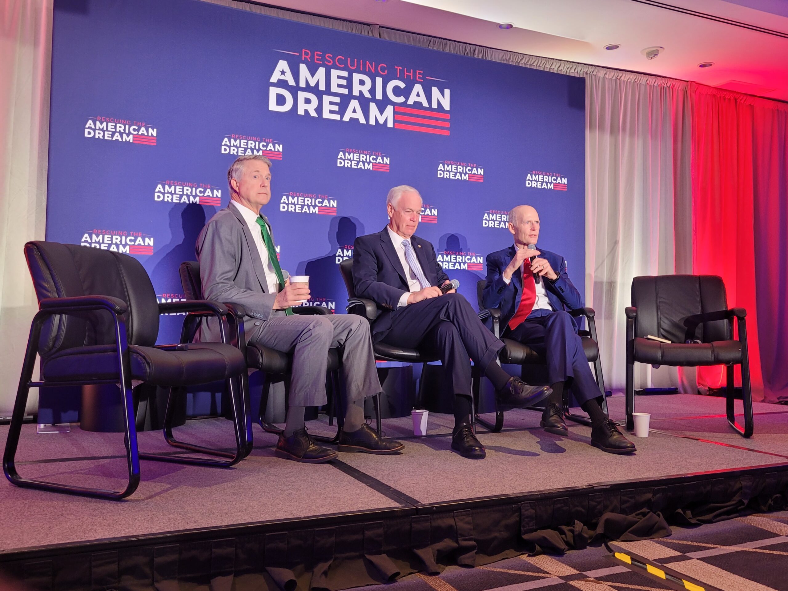 Joined by U.S. Sens. Ron Johnson of Wisconsin and Roger Marshall of Kansas, Scott talked about the need for more of a free market to reduce the costs for Americans.