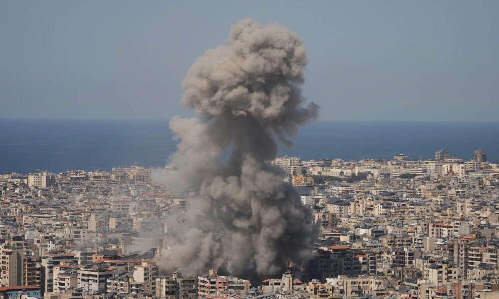 The attacks set a building ablaze in central Beirut’s densely populated Aicha Bakkar area, engulfing the top two floors. There were no immediate reports of casualties.