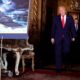 A poster displayed at the event at Trump’s gilded Mar-a-Lago estate featured an artist’s rendering of a sleek-looking warship dubbed the USS Defiant, cutting through choppy waters with a laser beam shooting from its deck and smoke billowing from a target in the background.