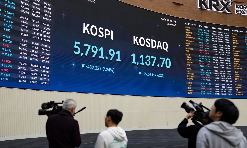Monday’s plunge adds to a steep slide in Asia’s markets since Trump’s Iran strikes. The KOSPI is down by over 16% since the Iran war began. Japan’s Nikkei 225 and Australia’s ASX 200 are down by around 10% and 6% respectively over the same period.