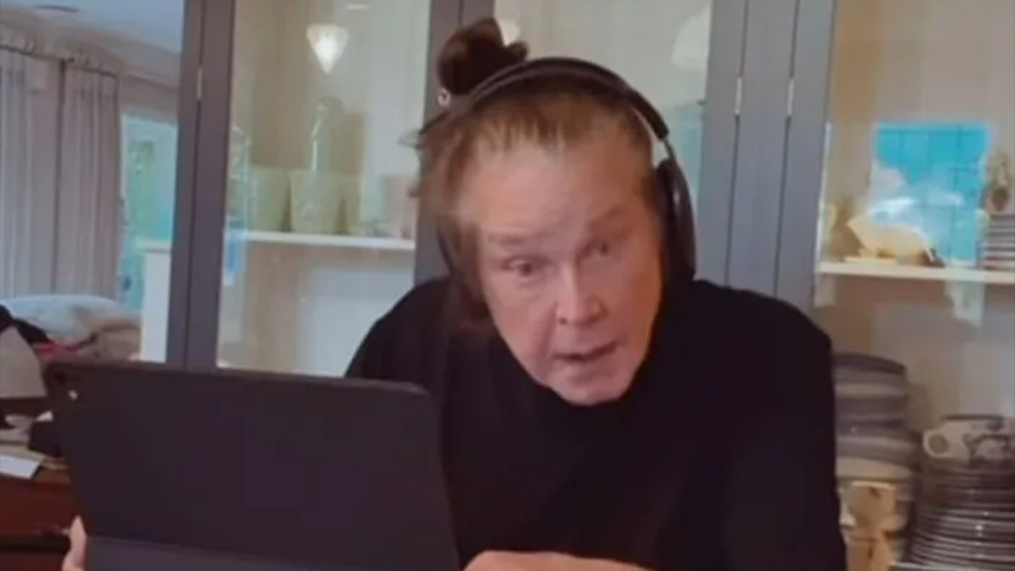 His daughterKelly Osbourne shared the clip on her Instagram Story on Sunday — the Black Sabbath icon can be seen sitting at a table scrolling on his iPad at his mansion in Buckinghamshire as Kelly playfully commands him to greet everyone.