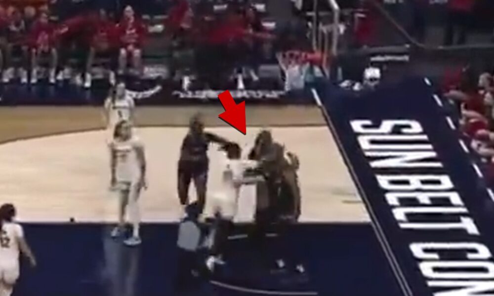 Coastal’s Tracey Hueston and South Alabama’s Cordasia Harris exchanged words under the basket. Seconds later, Hueston started swinging — letting loose a right hook that narrowly missed Harris’ face — igniting a full-on scrum as players and coaches rushed the court.