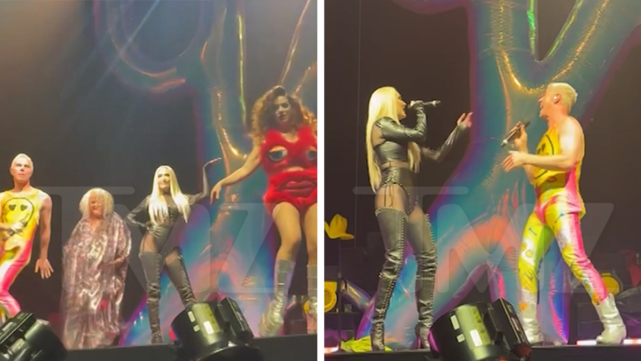 During the Scissor Sisters’ performance of their iconic hit “Let’s Have a Kiki” — as they opened for Kesha — “The Real Housewives of Beverly Hills” star stormed the stage, joining in the fun with full glam and signature sass.