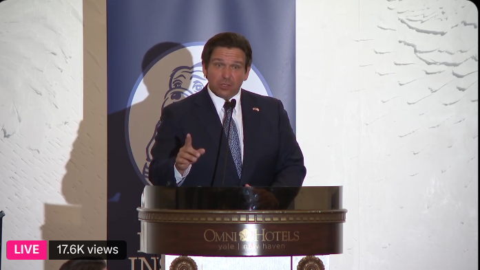 Gov. Ron DeSantis returned to his undergraduate Alma Mater Friday night,  and turned his attention to whether conservatism is a “racket” or not.