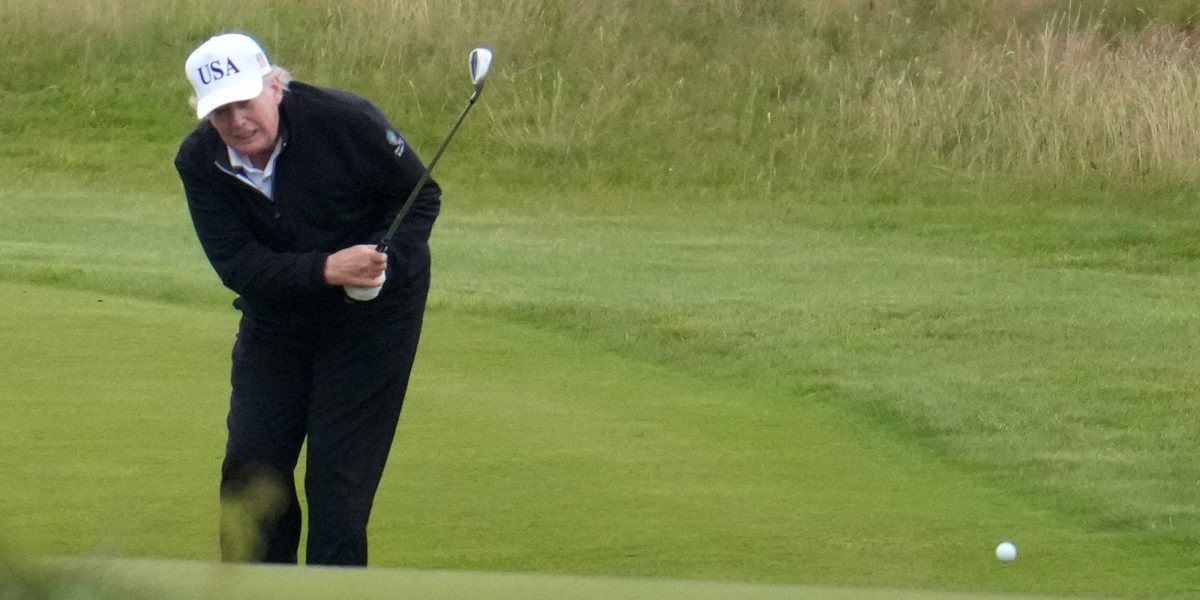 The Trump-von der Leyen meeting was taking place in Turnberry on Scotland’s southwestern coast, where the president owns a luxury golf resort. He was out on the course for much of the weekend.