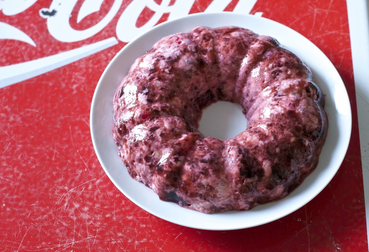 The eyeball-shaped pasta is mixed with a sugary combination of Cool Whip and a bunch of fruit. It looks kind of like pasta salad, but minus the usual makings of salad, like, you know, onions, celery and boiled eggs.